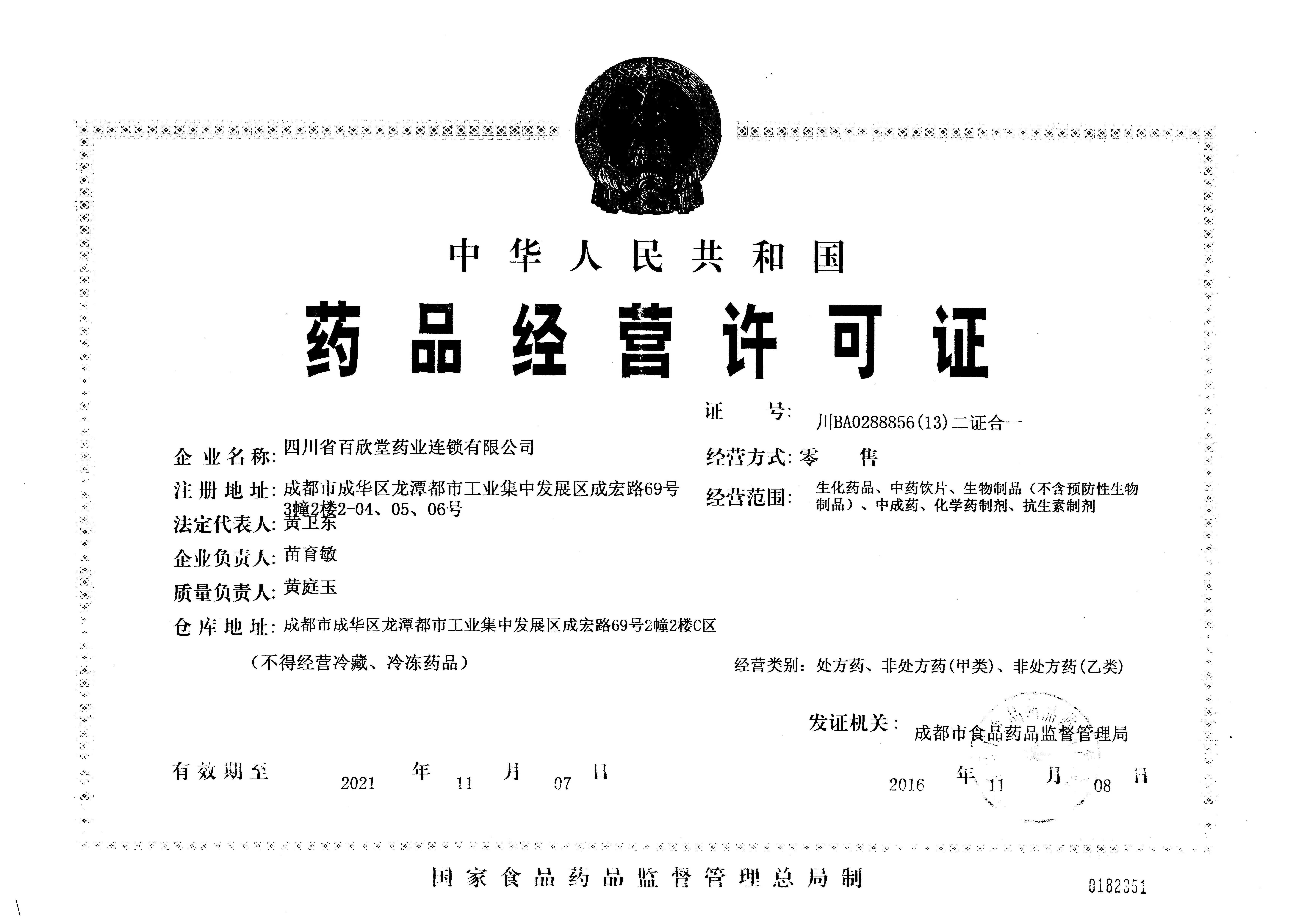 公司药品认证证书: